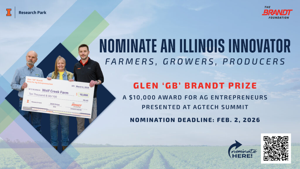 Nominations are now being accepted for the fifth Glen “GB” Brandt Prize for Ag Entrepreneurism, recognizing an Illinois farmer for their role in advancing innovation and entrepreneurship in the ag sector.